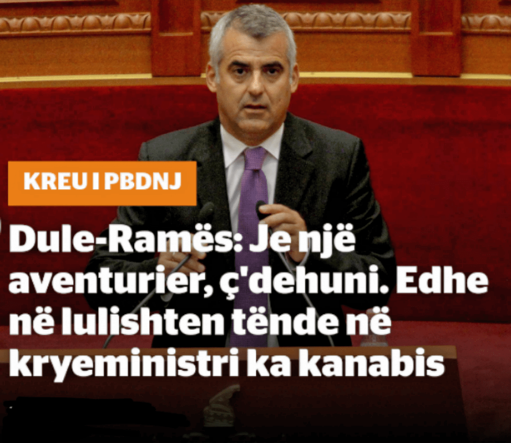 “Sot ne kemi një aventurier në krye të qeverisë, – tha Dule ndër të tjera, duek ngritur zërin për shembjen në Himarë në emër të Rilindjes Urbane dhe që fshehin sipas tij, interesa të mbrapshta klienteliste. – Pika më e fortë e shtetit shqiptar në këto 25 vjet, – tha Dule, – ka qënë roli stabilizues, bashkëpunues në rajon. Është ky kryeministër që i ka kthyer mbrapsht këto vlera paqësore dhe po presim sot të na zbulojë armikun e ri nën trysninë e ligjit të kthyer dhe kundërvënien e shoqërisë të importimit të mbetjeve, në kushtet e kanabizimit të vendit, kur jemi të sigurt se vetëm në lulishten para Kryeministrisë nuk ka kanabis, se në lulishtet mbrapa nuk jemi të sigurt se ka; në kushtet kur ky shpall armik Greqinë, që ka bërë avokatinë e Shqipërisë në NATO dhe po e bën edhe për integrimin në BE. Zotëria po krijon dyshime nëse realisht e do integrimin e vendit tonë në BE,” nënvizoi Dule.