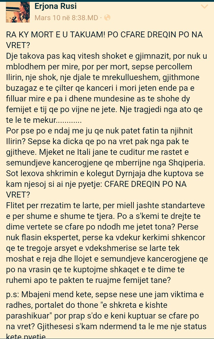Pas dështimit në Tiranë sh. Zeqir, bashkë me shoqen Ilmije, u pritën përzemërsisht dhe u puthën me shokun Aranit Çela. Nuk dihet se ç’kanë biseduar por pyetjes se kaq shumë e dëgjon Zeqiri të shoqen Ilmijen dikush i qënka përgjigjur: