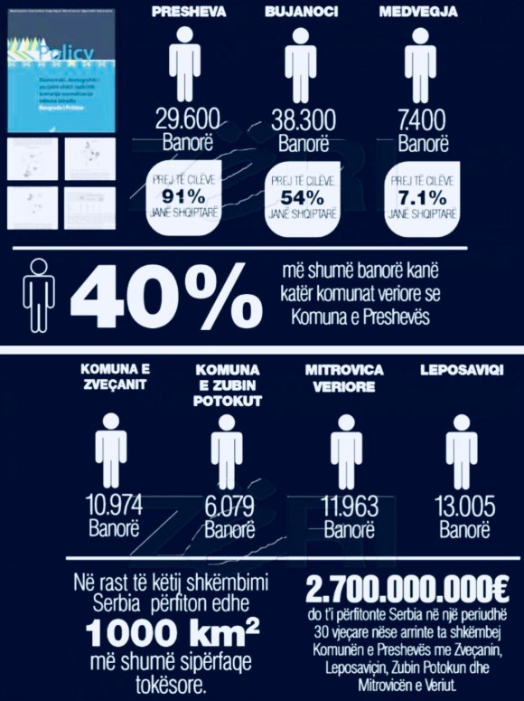 Propozohet që Kosova ta marrë vetëm Preshevën, ndërsa Serbia katër komunat veriore të vendit, me ç’rast përmenden përfitimet nga ky skenar prej 2.7 miliardë eurosh për shtetin fqinj.