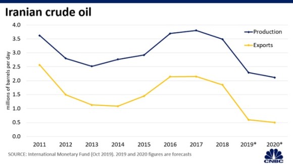 But restrictions on the sale of Iranian oil were among the U.S. sanctions that Trump reinstated two years ago. That’s one of the major reasons why forecasters, including the International Monetary Fund, expect the production and exports of Iranian crude oil to decline.