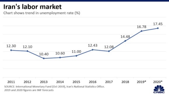 The weak local currency contributed to high levels of inflation in Iran — which the World Bank said peaked at 52% in May 2019. That raises the costs of living in Iran at a time when job opportunities are lacking.
