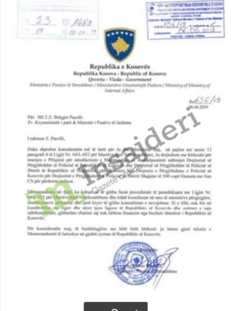 Marrëveshja e dyshimtë për 500 granata me gaz lotsjellës
