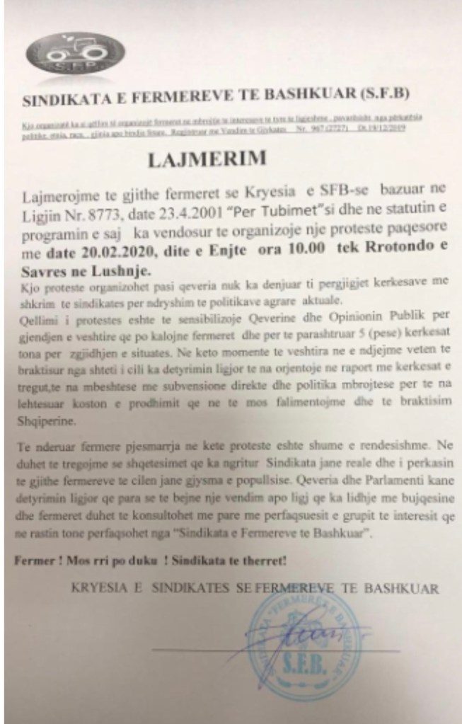 Ata mendojnë se braktisja që qeveria po u bën fernerëve, po sjell si rrjedhojë mbështetjen e tregut serb, ku agropërpunuesit shqiptarë të qumshtit po blejnë mbi 30% të qumshtit (të pasterizuar) atje duke i kthyer fabrikat e tyre në fasoneri, vetëm për paketim. Për këtë fermerët kanë vendosur të rinisin më datën 20 shkurt protestat në Lushnje.