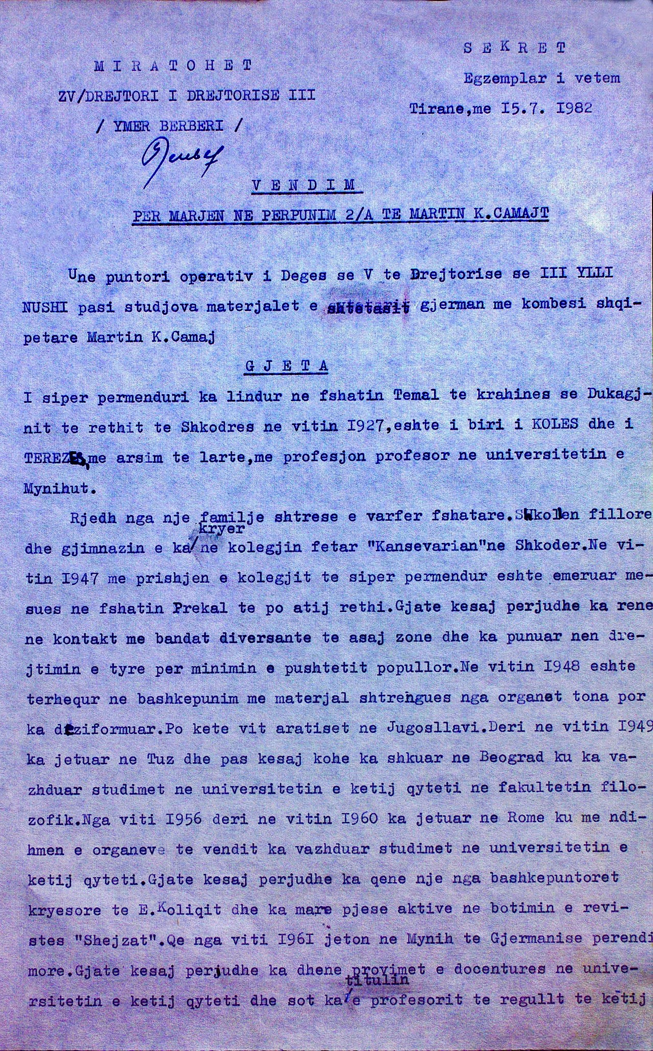 E fillojmë gjenezën me Ymer Berberin, me detyrën zëvendësdrejtor i Drejtorisë së Tretë të Sigurimit të Shtetit. Ai është njëri nga drejtuesit e armës famëkeqe që merrej me Martin Camajn. Ymeri është vjehrri i Fatmir Xhafës që është arkitekti kryesor i “reformës në drejtësi”, si dhe babai i ish gjyqtarit kushtetues Sokol Berberi.