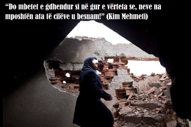 Ku ta dish, shqiptarët e Maqedonisë mbase do përjetojnë edhe lindjen e tretë: lindjen nga vetëdija se është vetëtradhti dhe vetëpërbuzje, të qëndrosh i përkulur dhe t’i përkrahësh politikisht ata që të kanë çuar nga ‘Sopoti’ në ‘Brodec’, nga likuidimi i Harun Aliut me shokët deri te ‘Monstra’, nga ‘Encliklopedia’ maqedonase që ofendoi tërë popullin shqiptar deri te ‘Shkupi 2014”…, pra nga një tragjedi në tjetrën, për të arritur deri te nata e përgjakur e Kumanovës, deri te nata kur regjimi DPMNE-BDI bëri diçka të paimagjinueshme për rrethana paqeje: bëri krim mbi njerëzimin dhe, para syve të tërë shqiptarisë dhe të tërë botës, ushtroi terror shtetëror mbi shqiptarët e tërë një lagjeje!” (Kim Mehmeti)