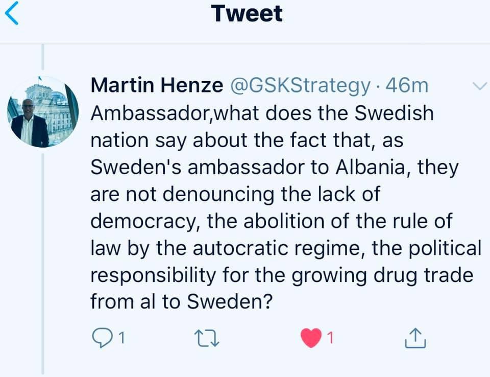 Ju zonja ambasadore duhet të protestojë, jo ti bëni fresk një të sëmuri mendor që ja u hedh si rreckë nga tavolina flamurin e saj kombëtar.