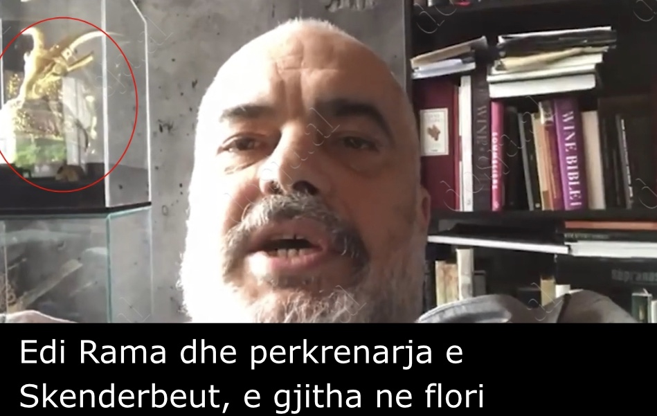 Kryeministri Edi Rama ka zhvilluar sot një video-mesazh live ku ka njoftuar për më të rejat në luftën kundër përhapjes së COVID-19. Siç ka njoftuar edhe vetë më herët, i pari i qeverisë është vetë-karantizuar në shtëpinë e tij në Surrel, ku bën joga dhe mban agjërim. Por, ajo që na tërhoqi vëmendjen ne të Dosja.al është kjo pamje pas shpinës së kryeministrit. Bëhet fjalë për “Përkrenaren e Skënderbeut”, një objekt i shtrenjtë që qëndron për dekor në vilën kryeministrore. Përkrenarja që shihni në këtë foto, iu dhurua shtetit shqiptar, më saktë Kryeministrisë 2 vite më parë, më 27 nëntor 2018, kur në Sallën e Hartave në Kryeministri u prezantua një hartë e rrallë e shekullit të XV-që ku flitej për Skënderbeun.