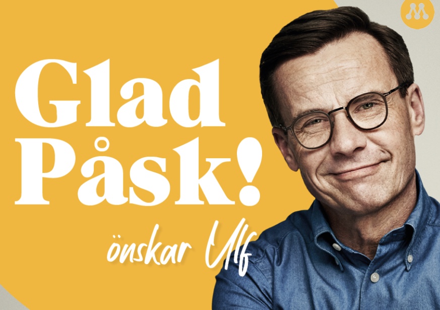 Jag vill ta det här tillfället att önska alla medlemmar i Moderaterna en fin påskhelg. Själv ska jag ladda batterierna i Strängnäs under påsken, vara med Birgitta, barnen och hunden. Och äta ett och annat ägg. Men tyvärr inte tillsammans med mormor och farmor. Dem tar vi med på FaceTime.