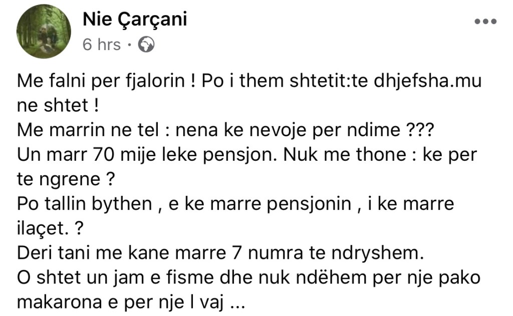Un marr 70 mije leke pensjon. Nuk me thone : ke per te ngrene ?