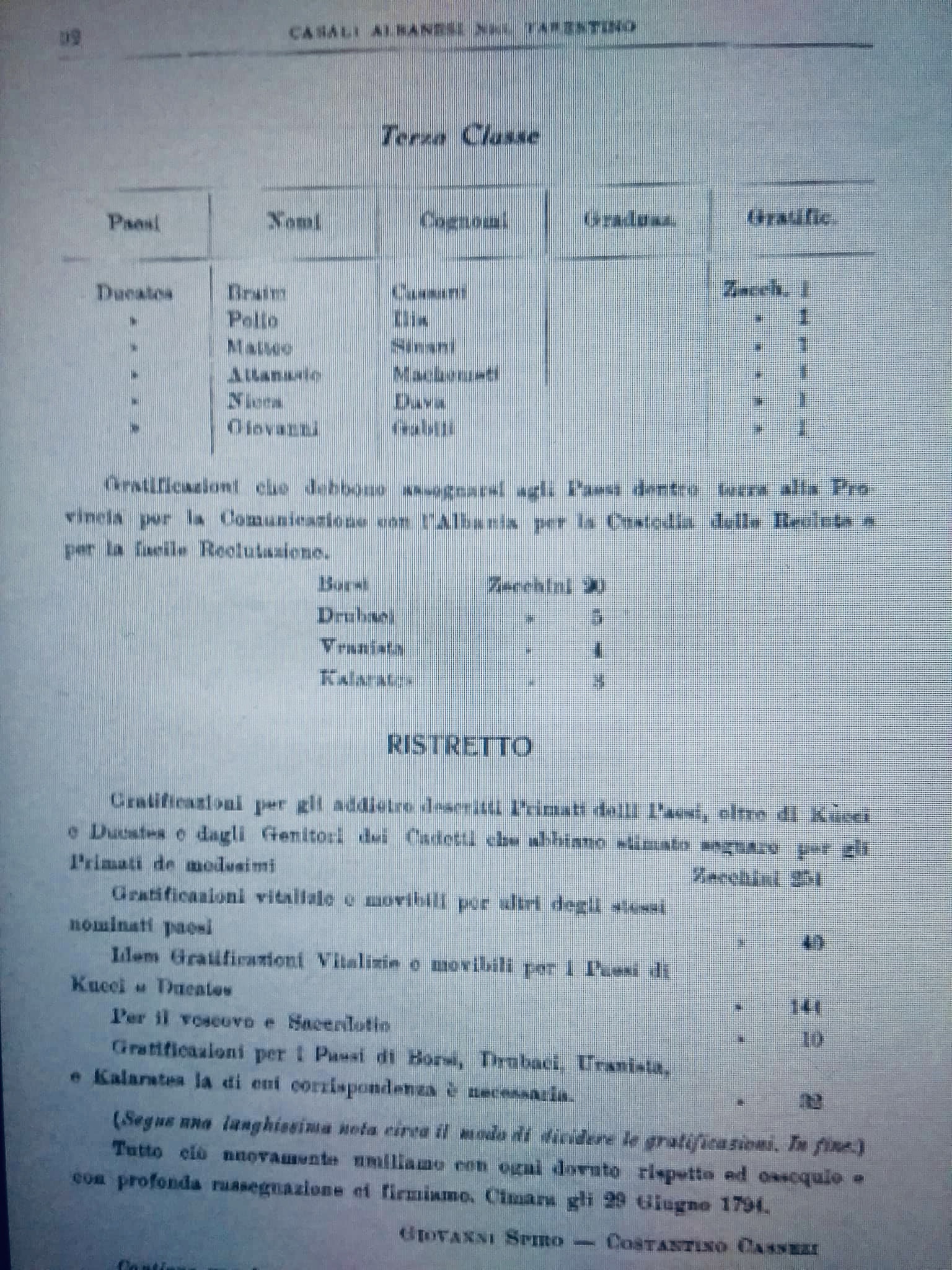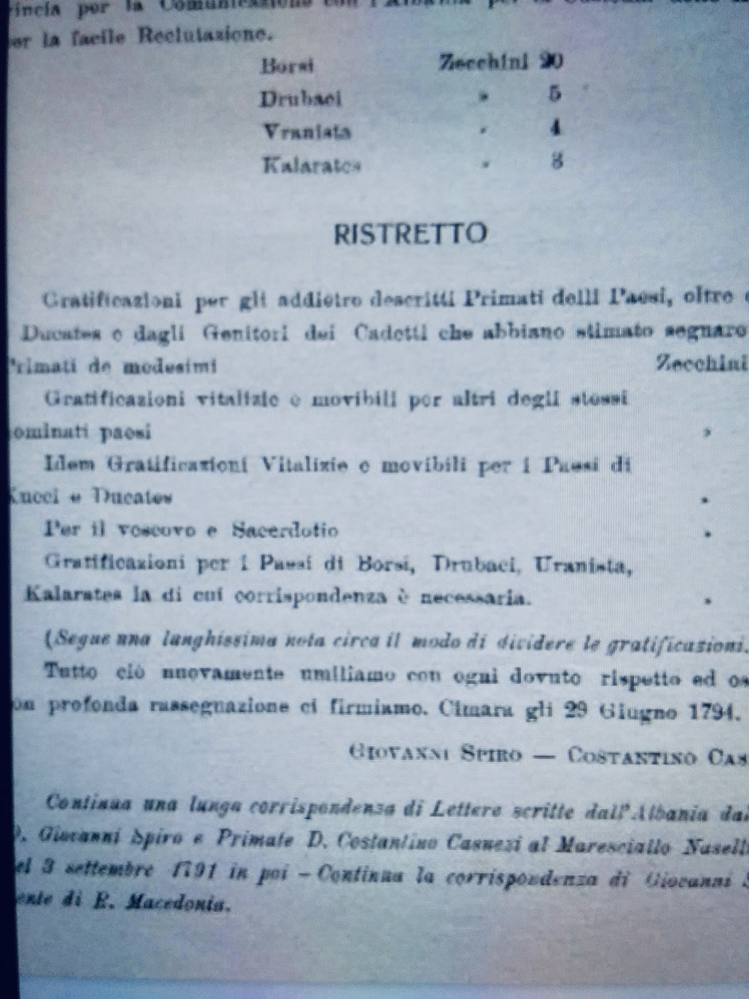 Ky dokument është firmosur nga Giovanni Spiro (Jani spiro) dhe Kostantin Kasneci.