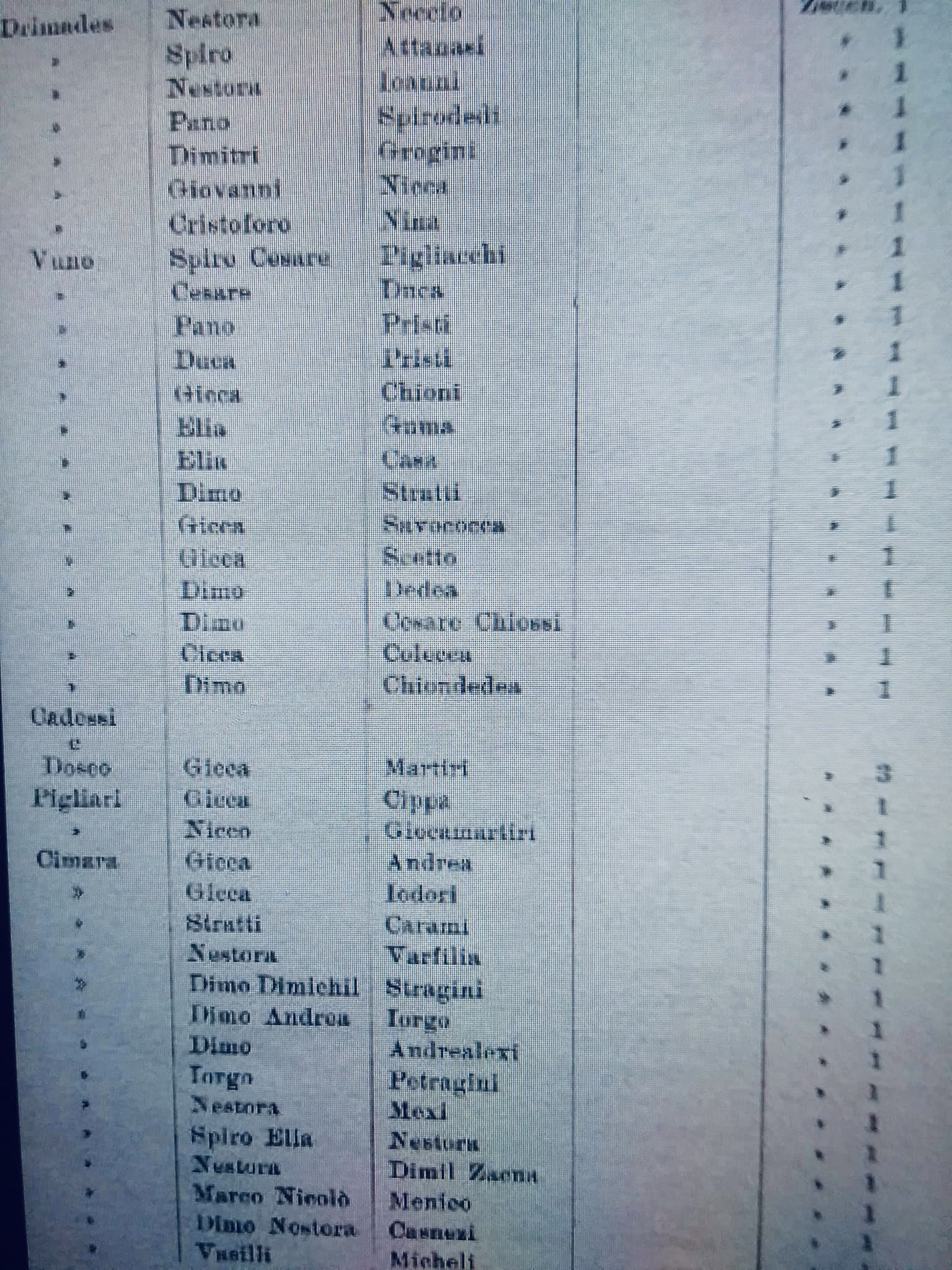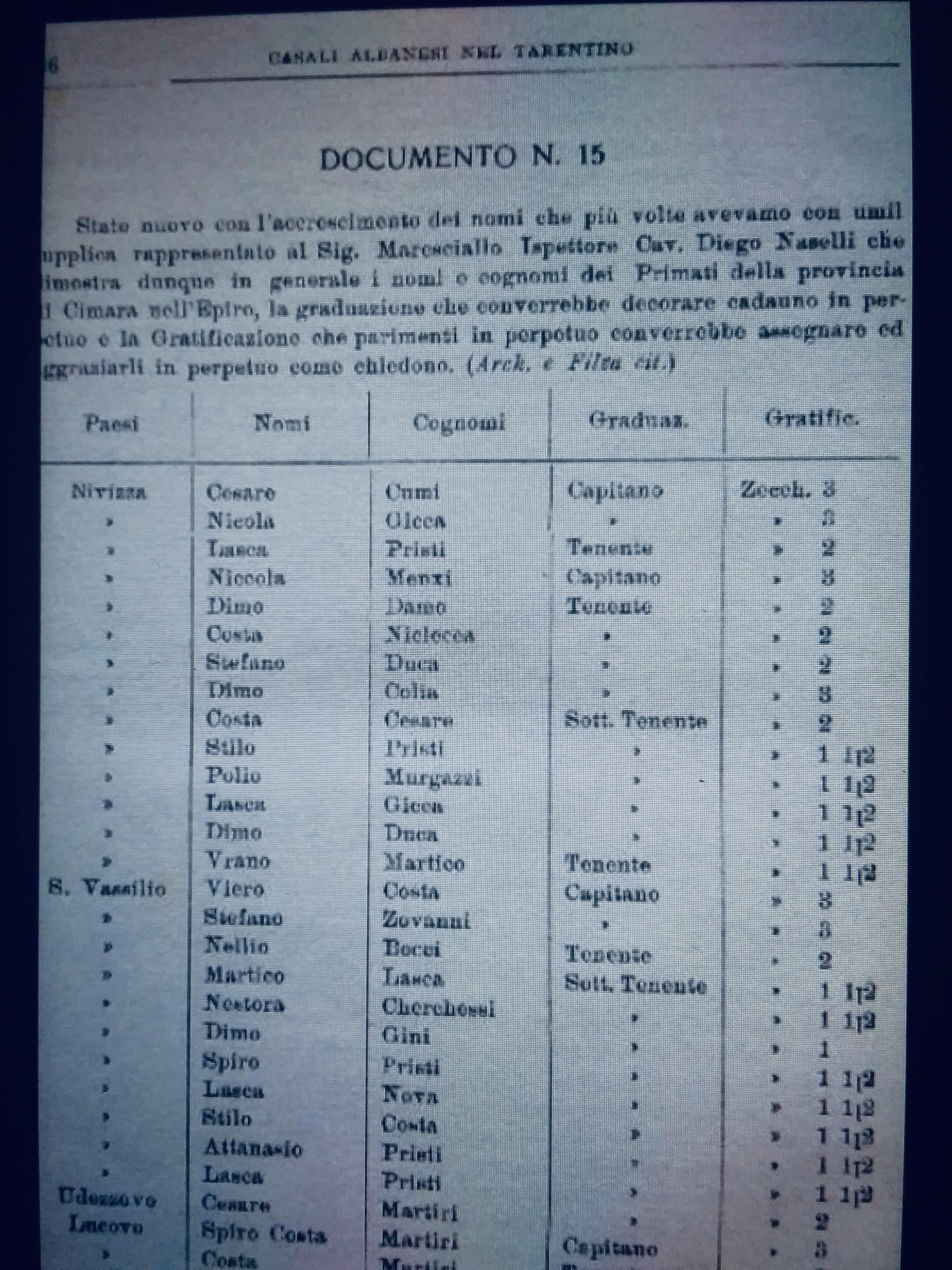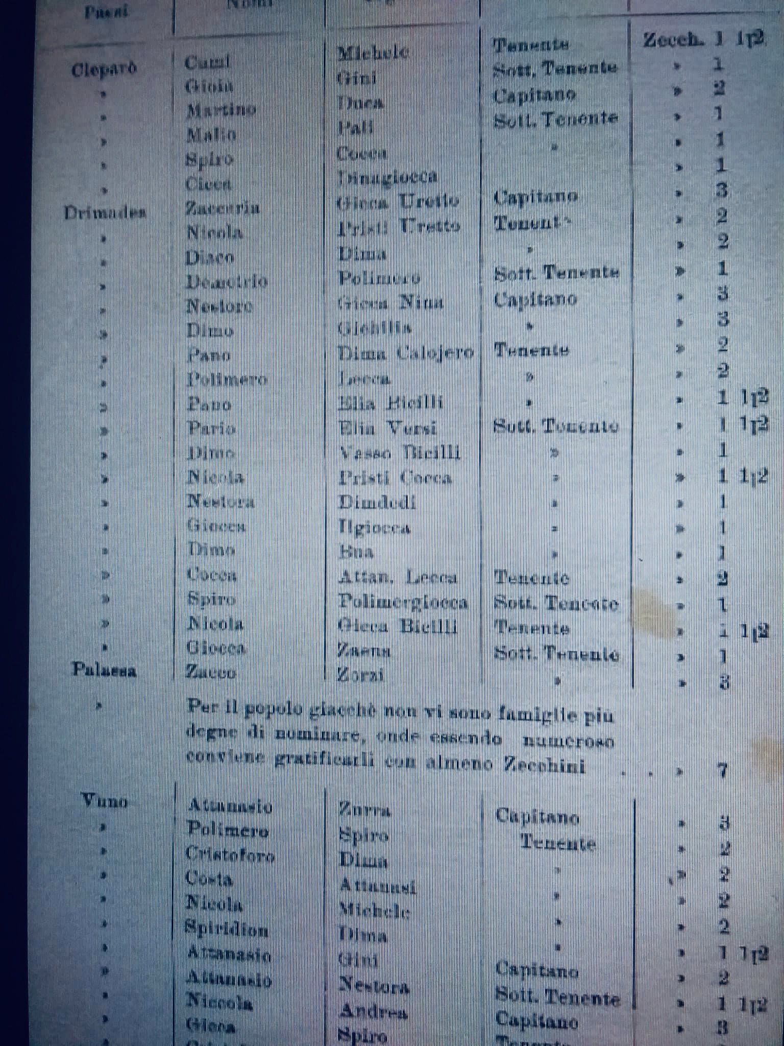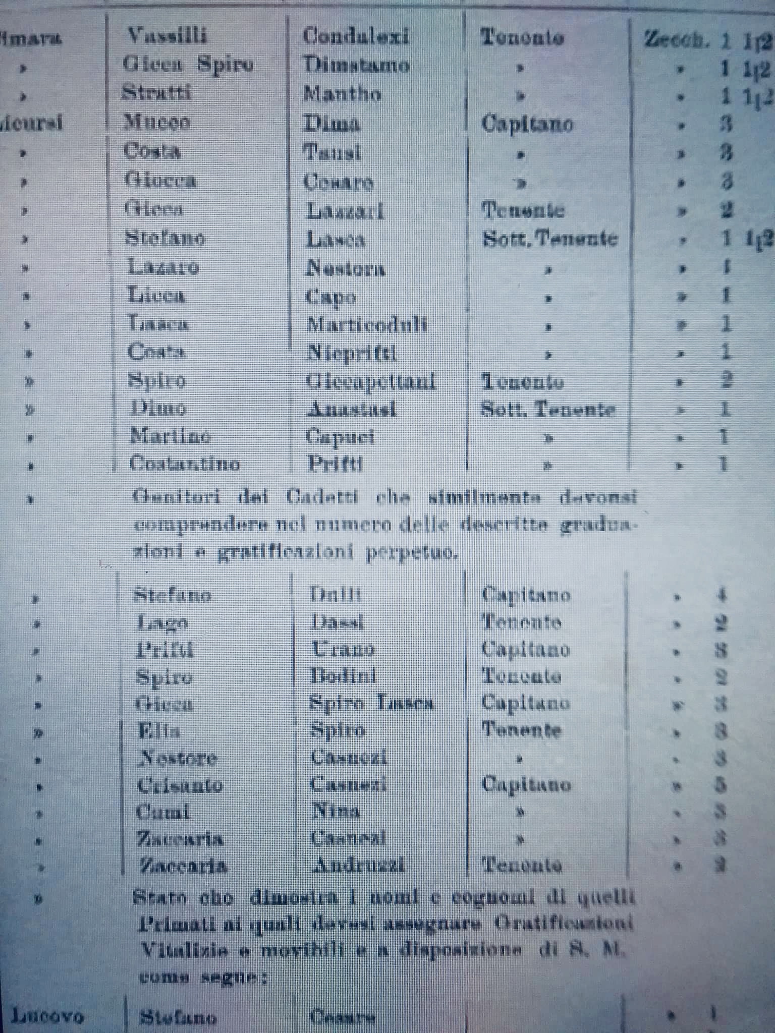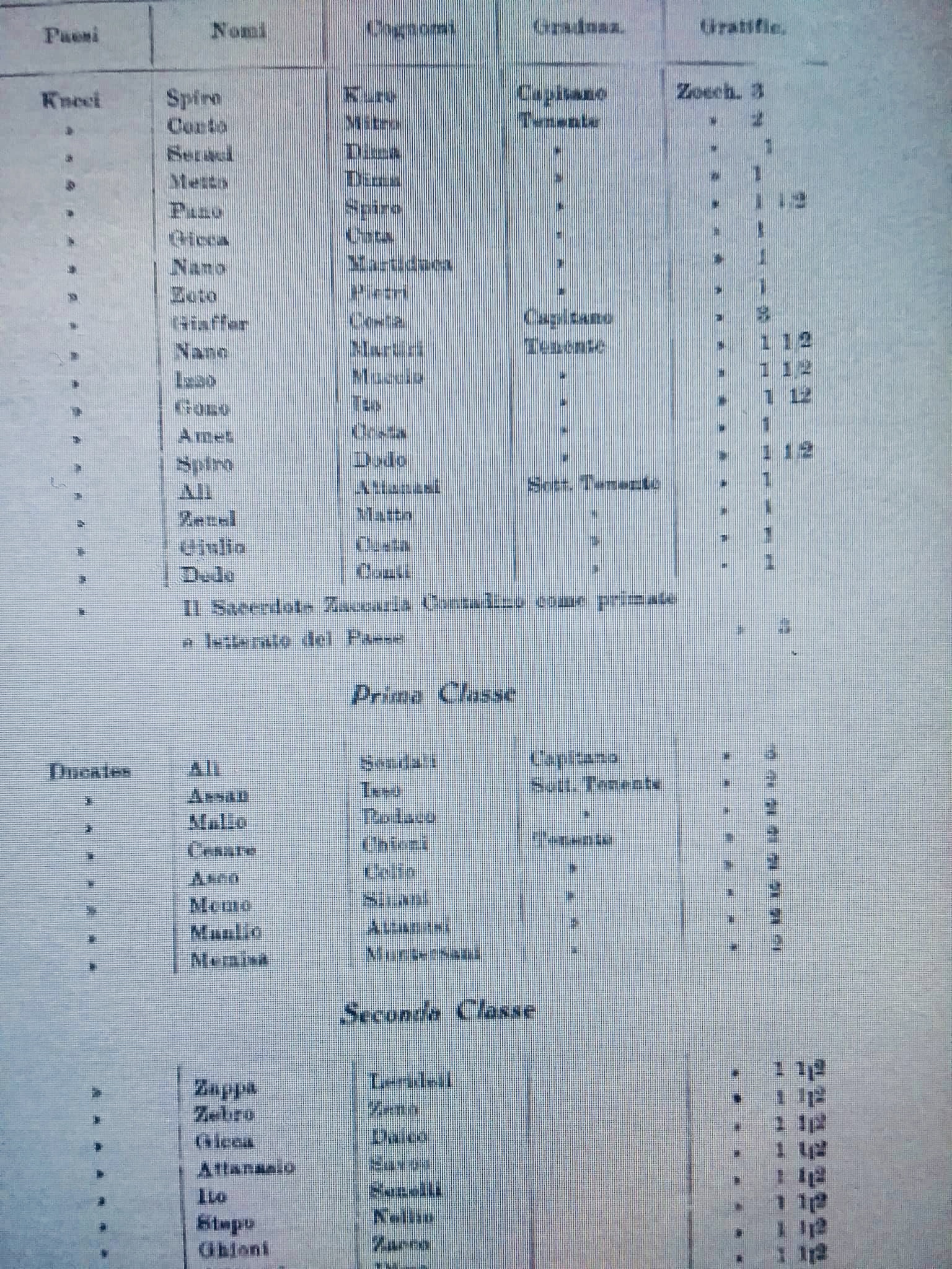 Kjo liste ështe e pergatitur nga paria himarjote ku dhe shperblimet merreshin ne baze te gradave.