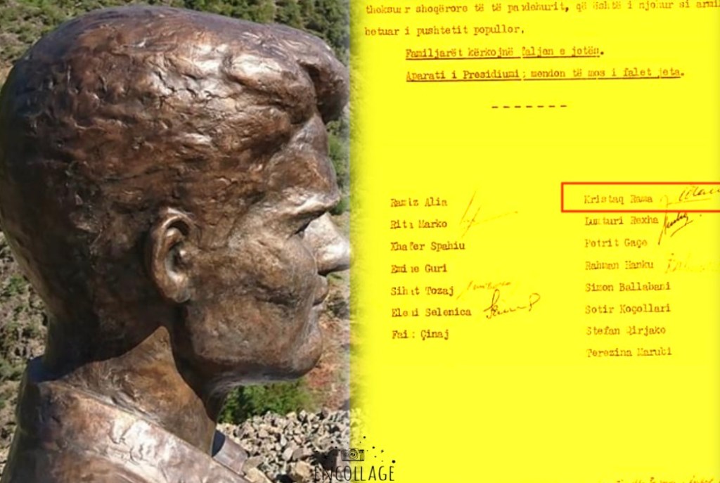 Kristaq Rama, skulptor nuk iu shmang vendosjes se firmes me te vare ty edhe pse ishte i vetmi artist ne ate liste dhe duhej te kishte ndjeshmeri si skulptori per poetin..