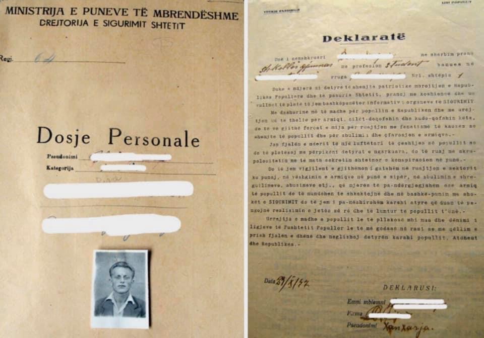 “Vumë re se kandidati pranoi bashkëpunimin, por jo me entuziazëm. Mbasi iu dhanë udhëzimet e nevojshme dhe ia la data e takimit, ky në ditën e caktuar nuk doli. Pasi u kap nga punëtori operativ, erdhi disa herë në takim. Duke parë se ky nuk ishte në rregull dhe korrekt, është kapur përsëri nga punëtori operativ dhe i është folur ashpër deri në atë shkallë sa vetë bashkëpunëtori tha: “Po ua them troç. Këtë punë nuk e bëj dot. Nuk u thashë atë ditë që biseduam këtë, sepse kisha droje dhe nuk e dija si ishin rregullat” (ciatuar me korrektim letrar se sigurimsat nuk dinin ta shkruanin gjuhën shqipe). Për arsye se u gjykua se kishte “koncepte armiqësore” dhe zhvillonte edhe vetë “veprimtari armiqësore”, u përjashtua nga rrjetit agjenturial.