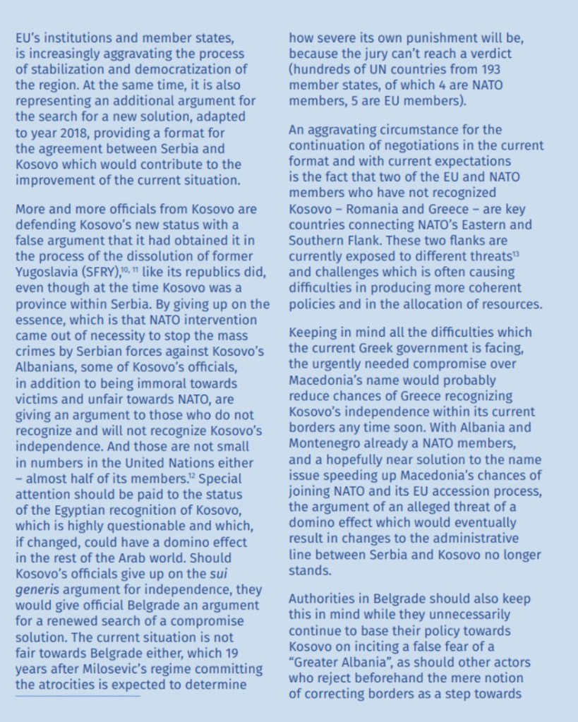Për më tepër, asnjë provë nuk mbështet akuzat greke se minoriteti i tyre në jug të Shqipërisë persekutohet nga regjimi i Enver Hoxhës; në fakt minoriteti grek ka proporcionalisht më tepër përfaqësues në Këshillin e Ministrave dhe në pozicione të tjera të rëndësishme civile e ushtarake…”