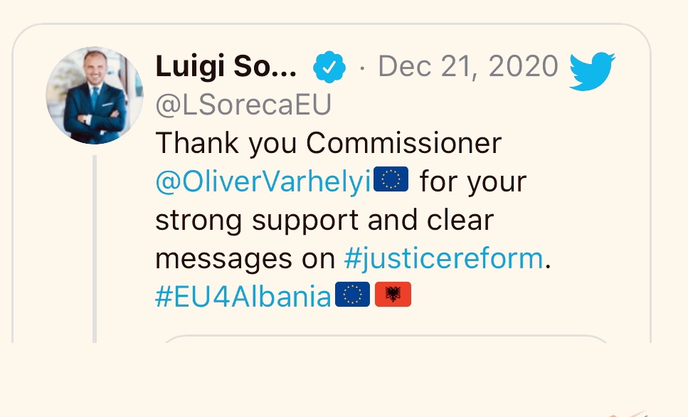 Vettingu vazhdon me të njëjtin profesionalizëm dhe përkushtim për të siguruar që reforma në drejtësi të japë më të mirën për qytetarët shqiptarë. Sulmet e padrejta duhet të ndalen”, shkruan Calavera. Ndërkohë, Komisioneri i Zgjerimit, Oliver Varhelyi shkroi se BE mbështet fuqimisht procesin e verifikimit, i cili është thelbësor për integrimin e Shqipërisë.