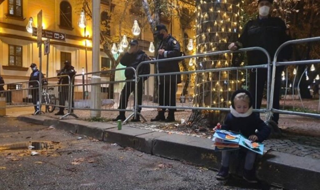 Ndërkohë dhjetra metra me tej vajzës së vogël hidhej gazi lotsjellës dhe kërciste dajaku policor (shiko fotot)