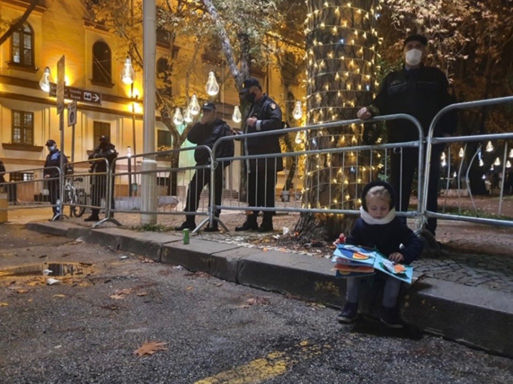 Siç duket në foto një vajzë 5 vjeçare edhe ajo në protestë!