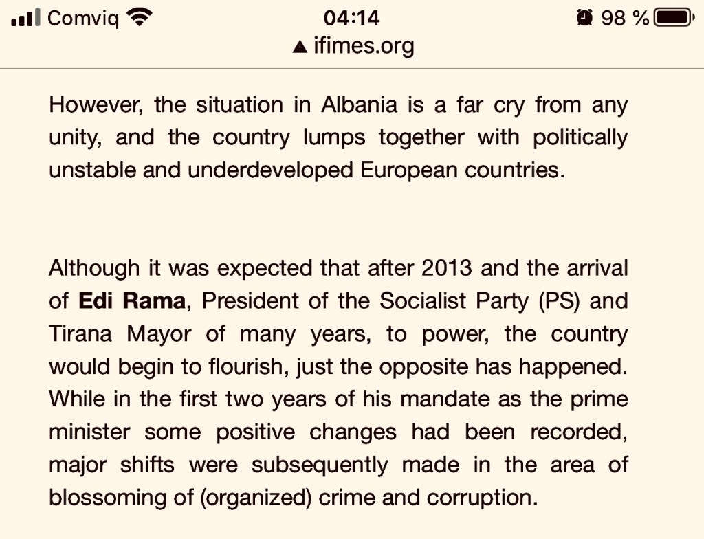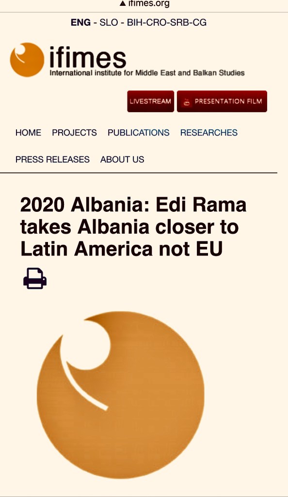 Eshte edhe Instituti nderkombetar per studime ne lindjen e mesme dhe ballkanin ( IFIMES) ai qe ka akuzuar Edi Ramen se po e con shqiperine jo drejt BE-se, por drejt Amerikës Latine.