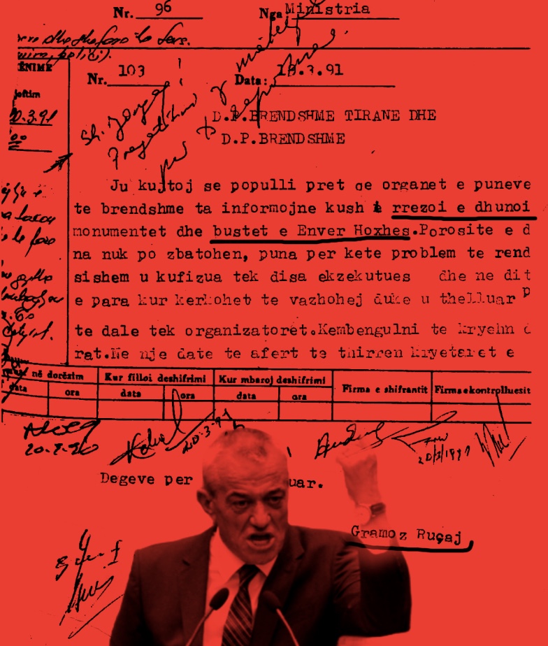 Muret blu dhe shkrimet ne to, “vdekje komunizmit” “Liri Demokraci” “Rrofte Partia Demokratike dhe dr Berisha” ata i tërbonte.