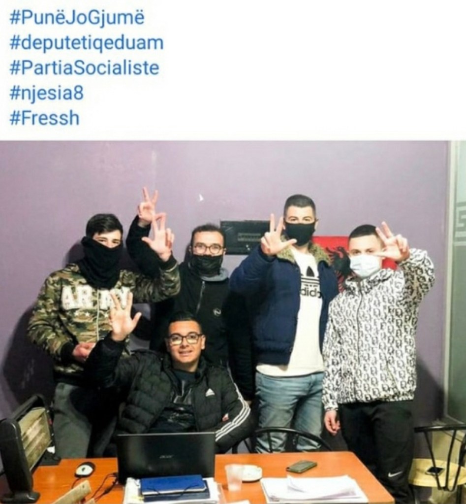 Punë jo gjumë shkruajne në faqen e tyre freshistat e ”rilindjes” në njësine 8 në Tiranë, dhe nuk harrojnë të pershendesin me simbolin sërb të tre gishtave.