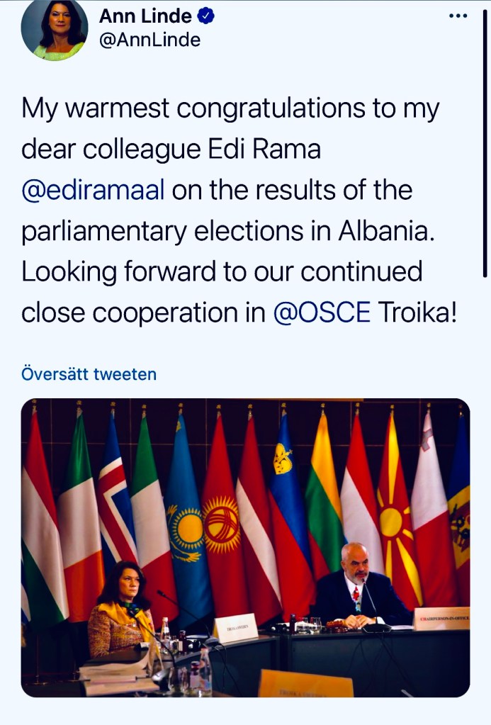 YOU TODAY NOT ONLY AS THE FOREIGN MINISTER OF SWEDEN, THE COUNTRIES WHERE I HAD THE HONOR NOT ONLY TO WAIT FOR ME AND PROTECT ME, BUT AND TO PROTECT ME, THE PLACE WHERE I LIVE AND WHERE TO LIVE AND ENJOY WHERE MODERATERNA, I WAS NOT HAPPY WHEN YOU, AS THE MINISTER AND DIRECTOR OF THE OSCE PRESIDENCY, IN THE NAME OF STABILITY, UNWANTLY EXTENDED A LIVING DICTATORSHIP AND DICTATORSHIP IN THE BALK.