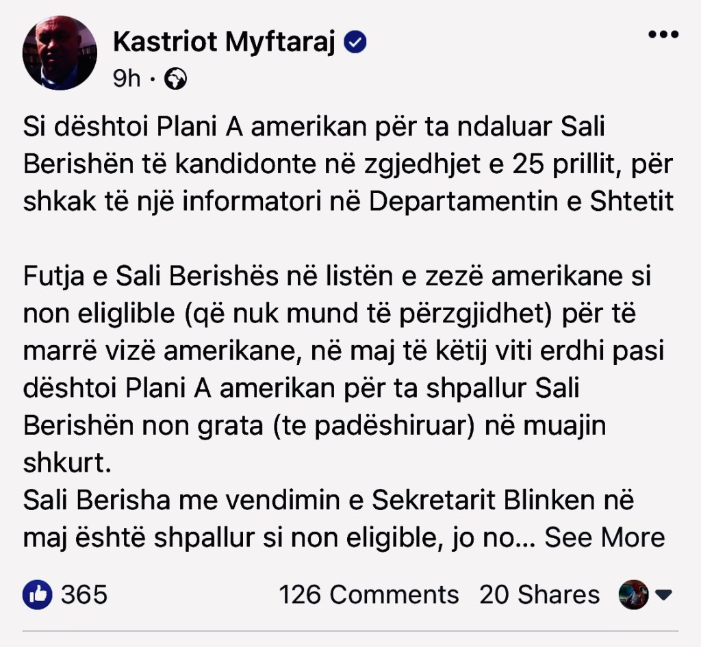 How American Plan A failed to stop Sali Berisha from running in the April 25 elections, due to an informant in the State Department.
