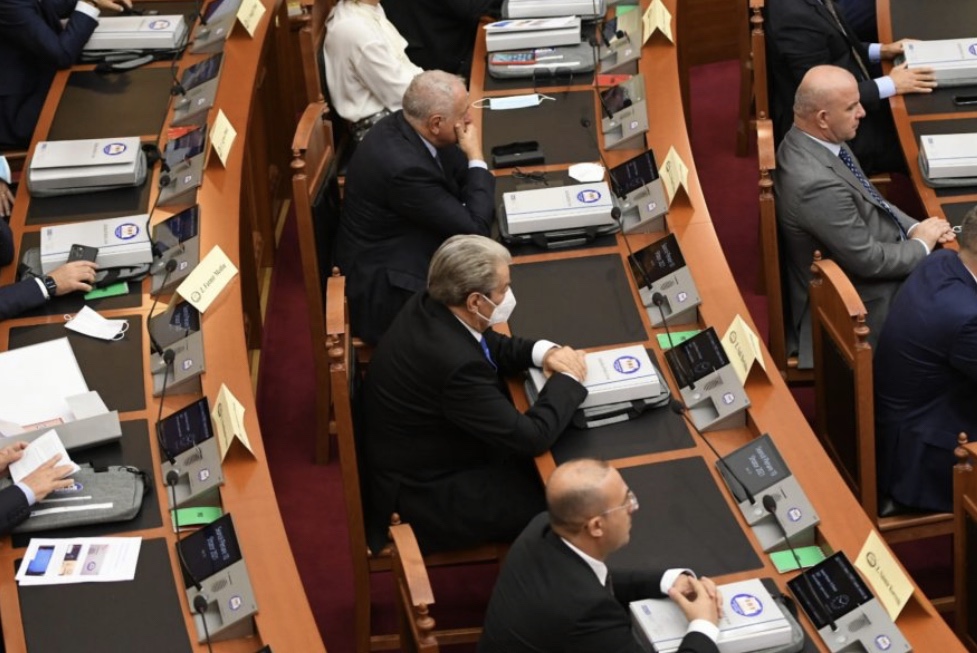 Ndërsa në krahun tjetër Lulzim Basha ka dalë nga ana tjetër e Kuvendit me kokën e ulur.