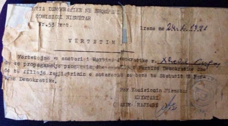 Kjo asnjëherë nuk ka ndikuar të kem urrejtje dhe hakmarrje ndaj cilido që ka bindje ndryshe , mbasi demokracinë ma ka ushqyer Babai im qysh kur më lindi . E njohu Perëndimin që në vitin 1928 kur shkoj emigrant ekonomik në Lion të Francës .