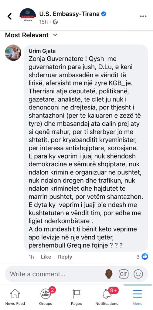🔺SHBA nuk mund të kërkojë sundimin e ligjit dhe demokracinë nga qeveria shqiptare dhe opozita shqiptare dhe në të njëjtën frymë të mos respektojë rregullat më themelore të vetë ligjit ndërkombëtar dhe më pas të vendosë nën presion të drejtpërdrejtë udhëheqësin e një partie pro-perëndimore, që është shtrëngim i papranueshëm.