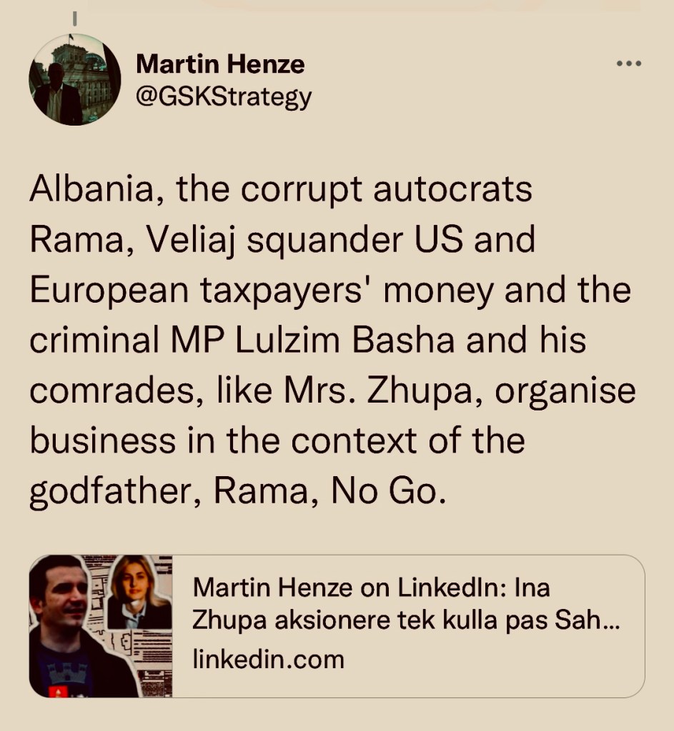 If the opposite were true, he would worry about the Port of Durres as a strategic point of NATO which with the corrupt affair of Rama – Basha, is trying to pass under Russian and Serbian influence.