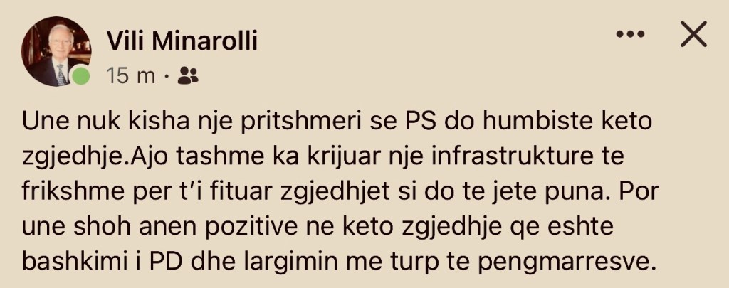 ♦️PS-ja këtë radhë fitoi më shumë sesa në sajë të hileve, falë fragmentarizimit të kundërshtarit. Pra autokrati shqiptar tani po i korr edhe elektoralisht frytet e lobimit për të shpallur non grata Sali Berishën, akt të cilin e noterizoi Basha me përjashtimin e atit të tij politik nga partia. ♦️Kryeministri sot mund të mburret se kjo garë vërtetoi edhe pastërtinë e 25 prillit duke pretenduar se rilindja është numerikisht e padiskutueshme në këtë vend.