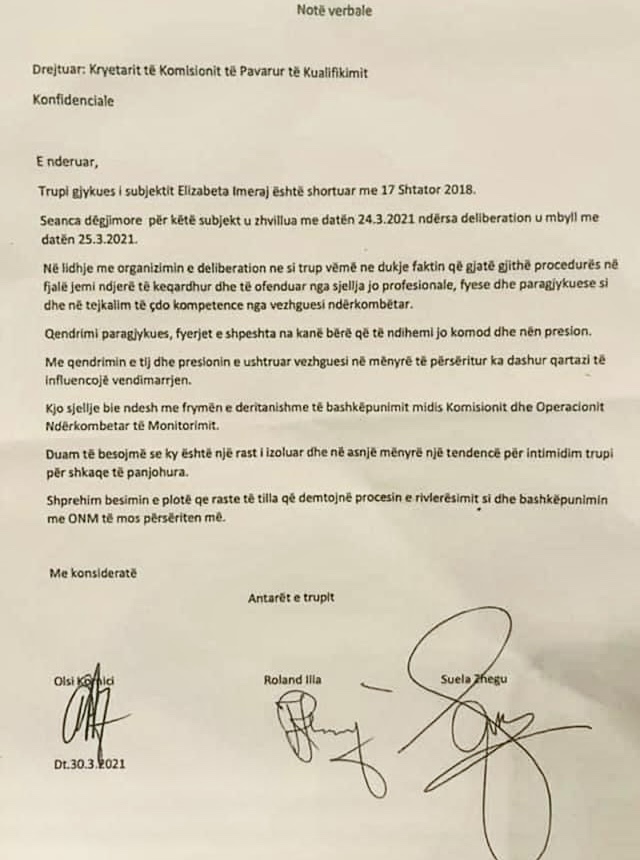 Vetë prokurorja Elizabeta Imeraj në seancat para KPA ka parashtruar pyetjen, se ‘kush është i interesuar për shkarkimin e saj, që hetoi grupet kriminale dhe terroristët’.