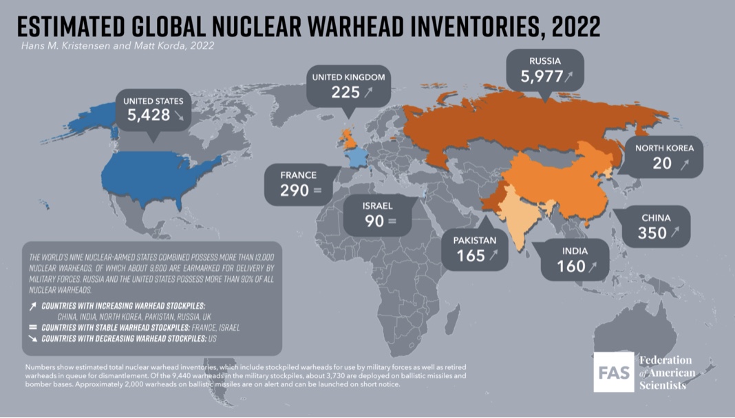 Federata e Shkencëtarëve Amerikanë vlerëson se Rusia ka 5977 koka bërthamore, më shumë se çdo vend tjetër.