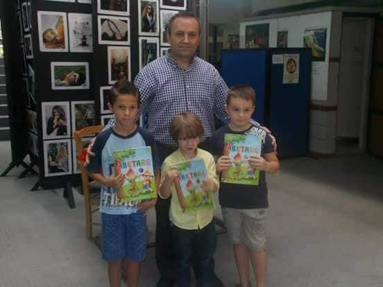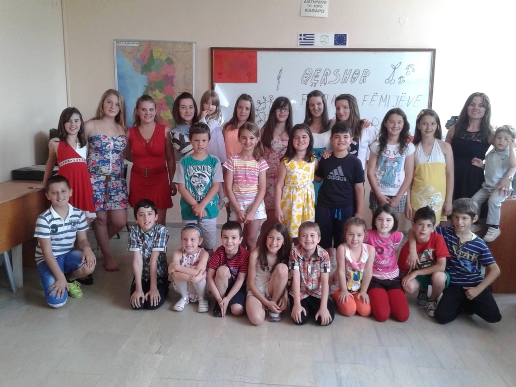 Eduart Tafani me femijet shqiptare ne shkollen shqipe ne qytetin e Volosit .