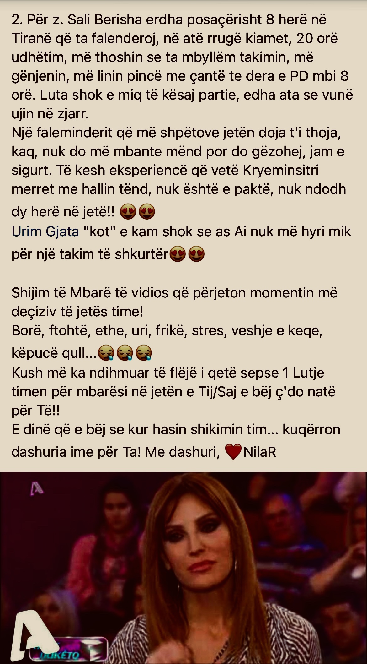 Përkushtimisht e Vllaznisht, ushtar i Atdheut, i Liri- Demokracisë, si dhe Imazhit Shqiptar & Identitetit Kombëtar, Astrit Memia!