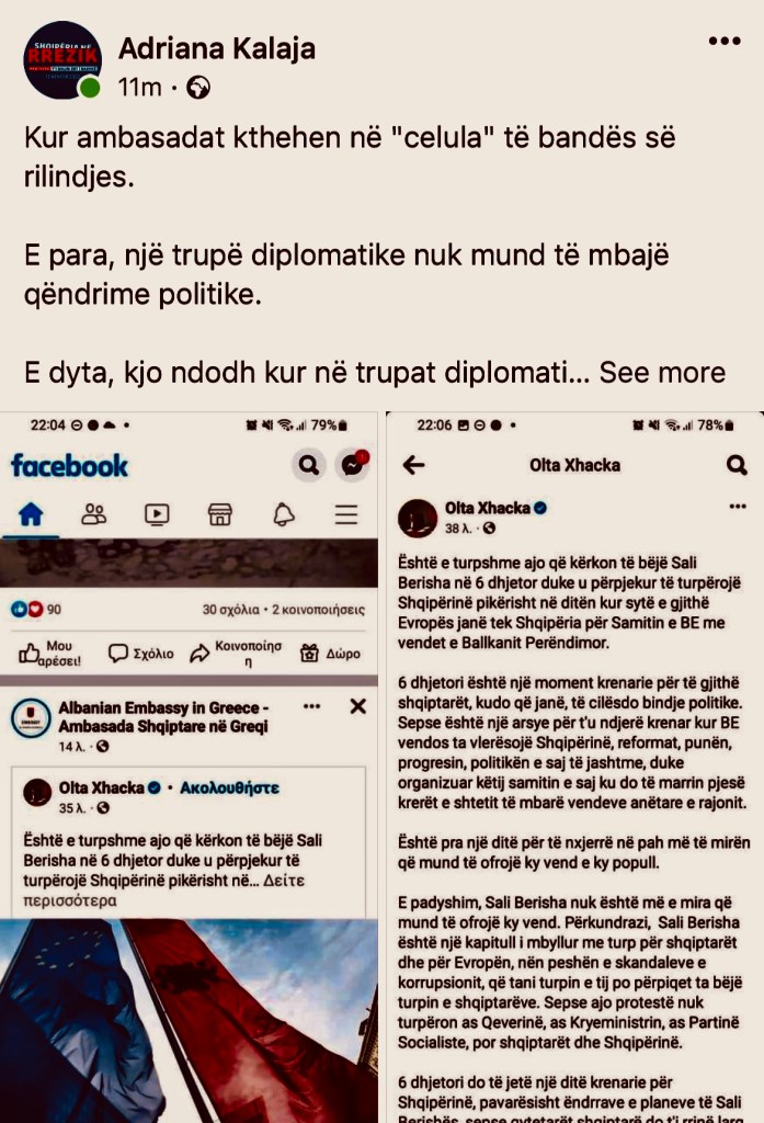 ”Kremi mbi tortë”. P . S.: Egziston dhe një dosje penale për trafikim fëmijësh. Këto shoqet dhe shokët ”rilindas” të ambasadës, janë që janë në Athinë, le të marrin dhe ndonjë informacion lidhur me dosjen penale të mamasë së znj. Ministre, Natasha Xhaçka, lidhur me trafikimin e fëmijëve shqiptarë.
