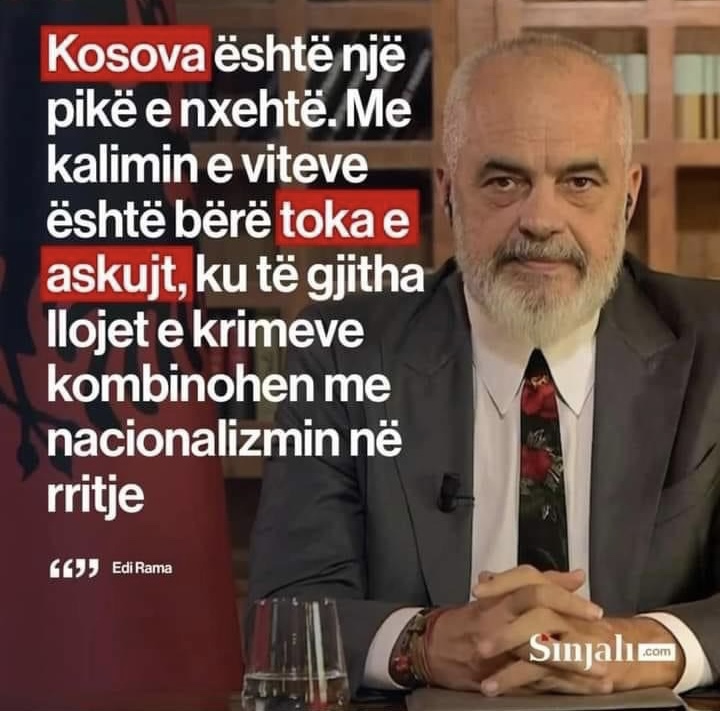 🔺Edi Rama, Pashiqi shqipfolës, lëshon drejt Kosovës akuzat të padëgjuara nga ndonjë njeri tjetër veç nga padroni i tij Vuçiç dhe Sergej Lavrov.
