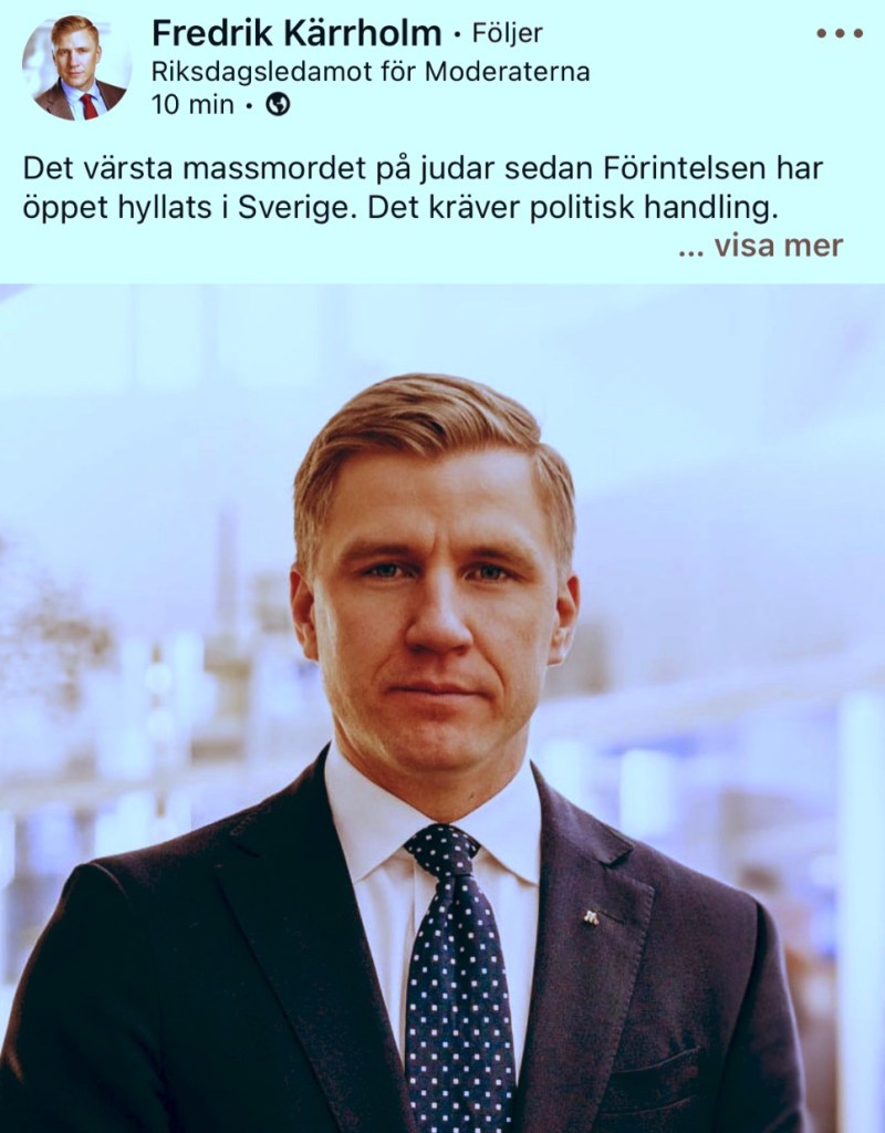 Edhe në partinë e Ulf Kristersson ka mendime të forta se si duhet të trajtohen ata që lavdërojnë Hamasin.