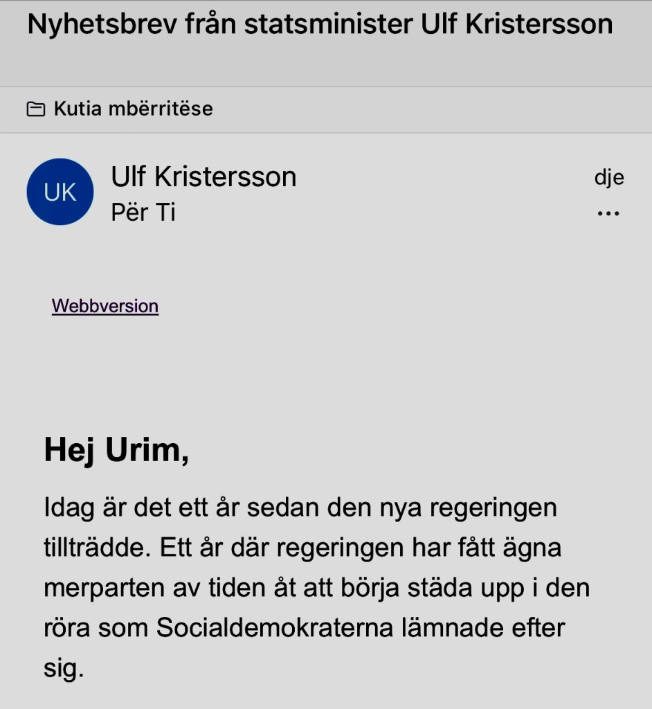 Ulf Kristersson më tej thotë se njerëzit që kërkojnë shtetësi duhet të pyesin veten nëse Suedia është një vend me të cilin ata ndajnë vlerat themelore.
