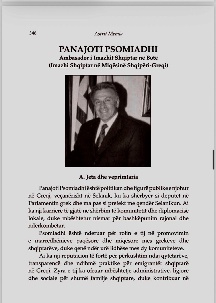Panajoti Psomiadhi mbetet kështu një figurë referimi, një ambasador i vërtetë i miqësisë dhe një dëshmi se diplomacia e zemrës dhe veprës ka fuqinë të ndërtojë ura të qëndrueshme mes popujve.