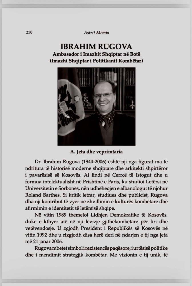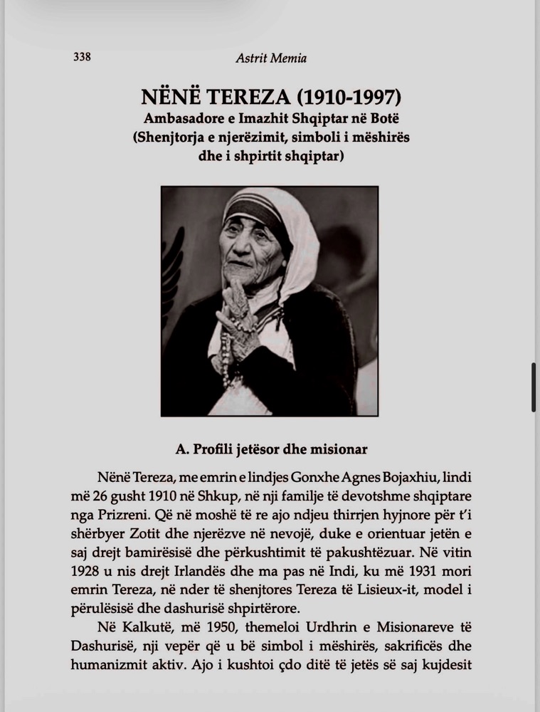 Σε αυτήν την εγκυκλοπαίδεια, πέρα από τις εξέχουσες προσωπικότητες και ακαδημαϊκούς, περιλαμβάνονται και διεθνείς και ιστορικές μορφές όπως η Μητέρα Τερέζα, ο Πάπας Ιωάννης Παύλος Β΄ και ο ιστορικός Πρόεδρος Ιμπραήμ Ρούγκοβα.